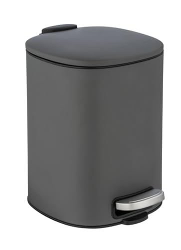WENKO Poubelle Salle de Bain à pédale Leman, Petite Poubelle de qualité supérieure, capacité 5 litres, Poubelle avec Porte-Sac Poubelle intégré, en Acier Verni, 21 x 24 x 28 cm, Gris