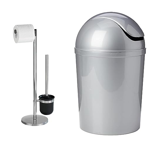 WENKO Combiné WC Parus Acier INOX - Porte-Brosse WC, Acier Inoxydable, 25.5 x 57 x 16.5 cm, Brillant & Poubelle Salle de Bain Economic, Gris, Petite Poubelle Salle de Bain 6L, 20 x 30 x 20 cm