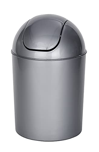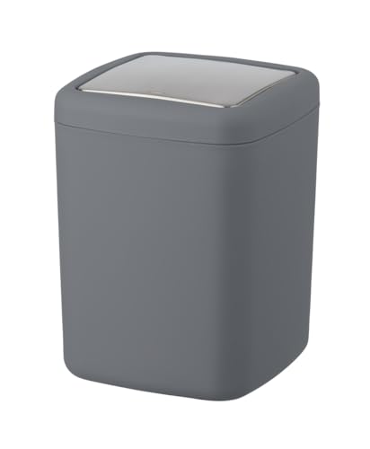 WENKO Petite poubelle salle de bain, poubelle à couvercle basculant Brasil L, 6.5L, gris, Ø 19,5 x 31 cm