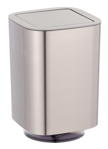 WENKO Petite poubelle salle de bain, poubelle à couvercle basculant Brasil L, 6.5L, taupe, Ø 19,5 x 31 cm