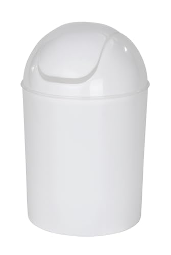 WENKO Petite Poubelle Salle de Bain, Poubelle à Couvercle, 5L, Inca, Blanc, Plastique Haut de Gamme, Ø 18,5 x 25,5 cm