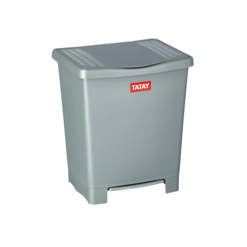 TATAY Poubelle Cuisine avec Pédale 25L | Intérieur et Extérieur | Pour Sacs de 30L | Plastique Résistant Sans BPA | 33,5x31x42 cm, Gris Métallisé