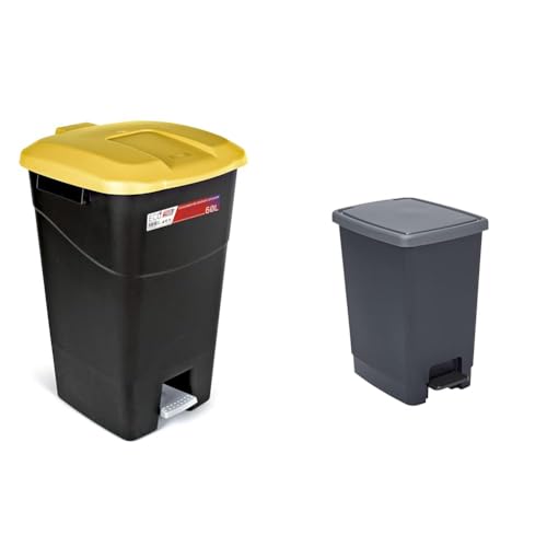 Tayg - Poubelle de 60 litres avec pédale, base noire et couvercle jaune, plastique & SUNDIS Flat Bin, poubelle à pédale 30 L, rectangulaire, en plastique recyclé, avec anses