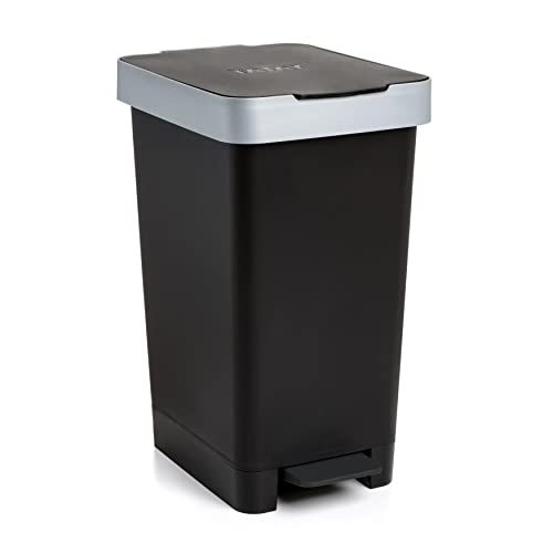 TATAY Poubelle Cuisine avec Pédale Smart 25L | Design Compact et Fonctionnel | Pour Intérieur et Extérieur | Compatible avec Sacs de 30L | Plastique Résistant Sans BPA | 26x36x47cm, Noir
