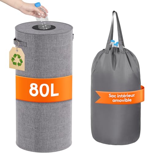 BELLE VOUS Poubelle de Tri Selectif avec Couvercle et Sac de Transport - Sac Conteneur pour Recyclage de 80L - Bac pour Bouteilles Vides et des Déchets en Verre ou en Plastique