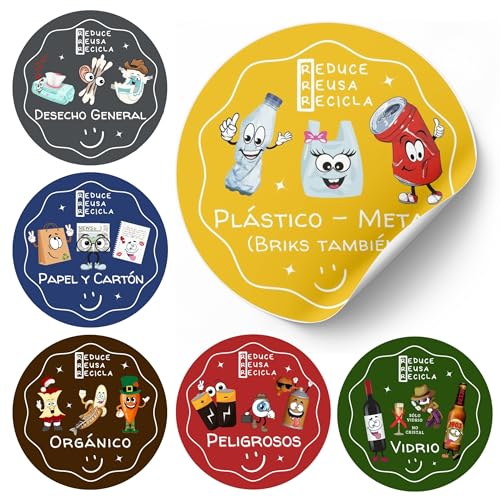 LiveLaif®- Ø11cm - Kit 6 Autocollants Poubelle de Tri Selectif ESPAGNOL| Vinyle Adhésif | Stikers pour Poubelle Recyclage | Etiquettes bac tri selectif |Colorés,Éducatifs pour Enfants (Ø11 cm-Español)
