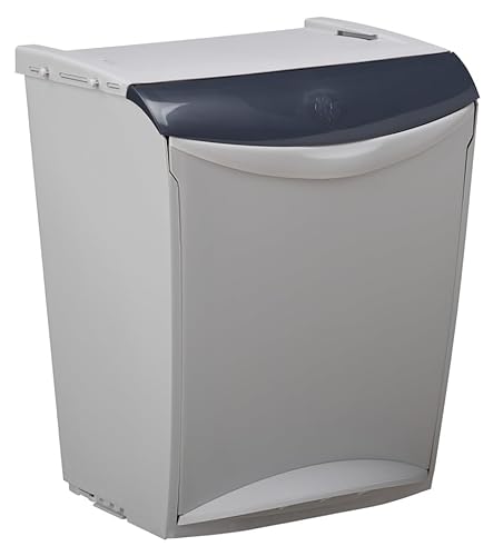 SUNDIS Loops, poubelle de tri sélectif d’intérieur 25L, empilable, rectangulaire, en plastique recyclé gris, avec couvercle, poignée et anse, pour cuisine, cantine, restaurant, salle de pause