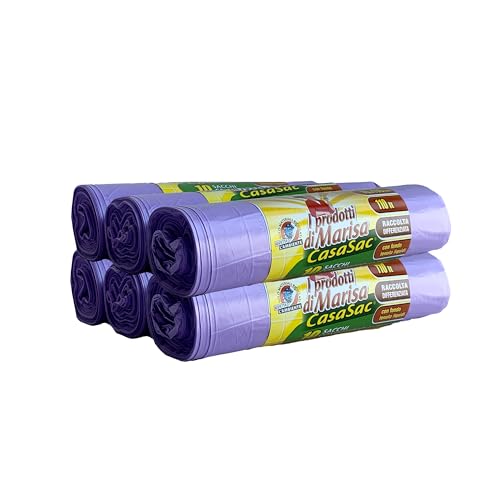 CSC - Sac Poubelle 110L avec Lacets, 60 Pièces, Sac Tri Sélectif Intérieur et Extérieur 70x110cm, Anti-Goutte et Anti-Perforation - Sacs à Déchets Grands et Résistants, 6 Rouleaux, Violet