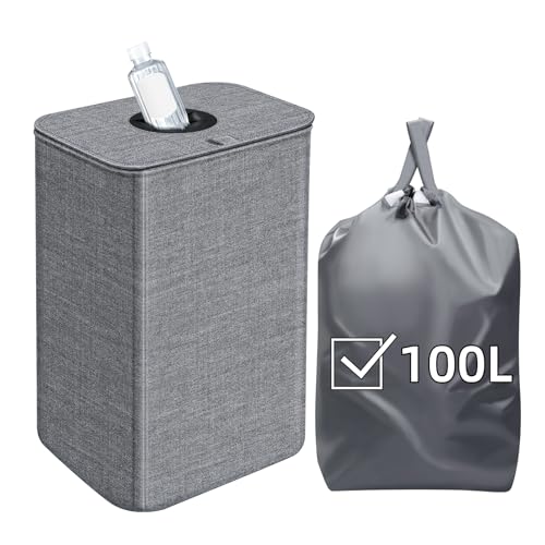 Hyunlai 100L Poubelle Recyclage Grande Poubelle Tri Selectif avec Sac Intérieur Poubelle pour Le Verre, Le Papier et Le Plastique, Cadre de Rangement Multifonctionnel pour Vêtements et Courtepointes
