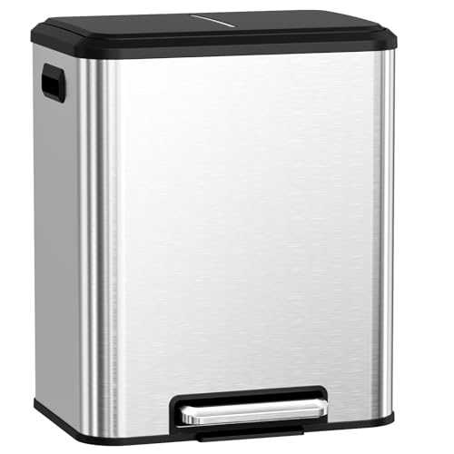LIFERUN Poubelle Tri Selectif 2 Bac, 2x30l, Double compartiments avec Pédale Couvercles en Douceur et Seaux Intérieurs, en Acier, pour déchets et recyclage de Cuisine, Argent