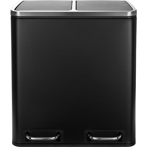 LIFERUN Poubelle Double Compartiment, 2x15L Poubelle de Cuisine Tri Selectif en Métal, avec Pédale, Seaux Intérieurs en Plastique Amovible, Fermeture en Douceu per petite Famille- Noir