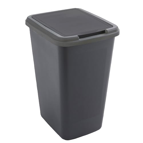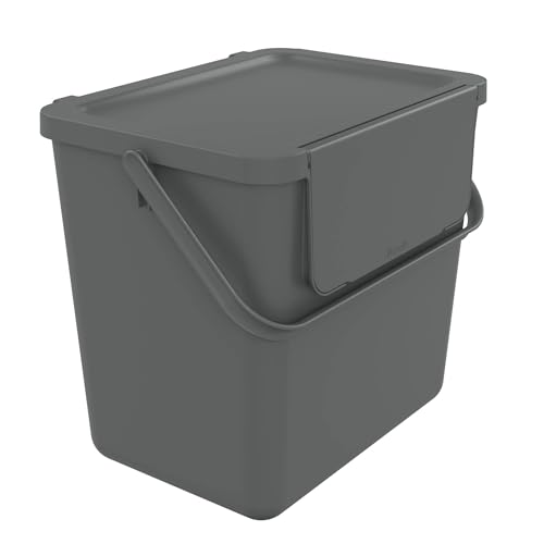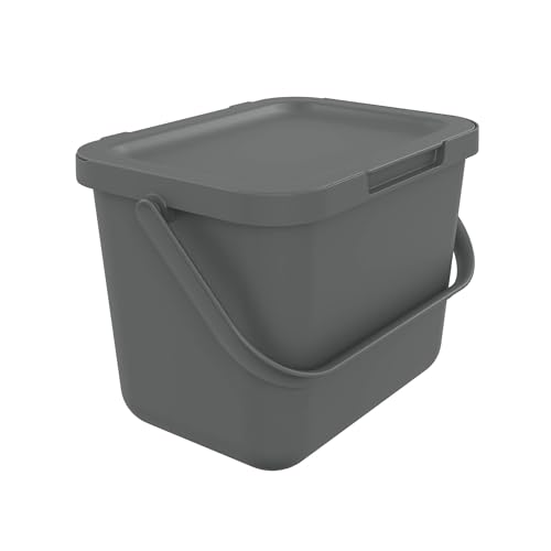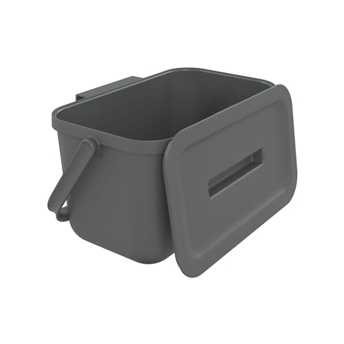 SUNDIS Loops, poubelle de tri sélectif d’intérieur 6L, rectangulaire, en plastique recyclé gris, avec couvercle et anse, idéale déchets organiques, pour cuisine, cantine, restaurant, salle de pause