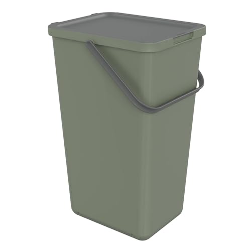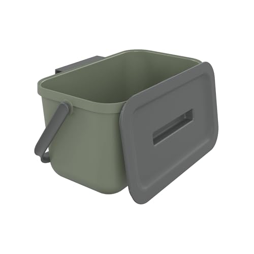 SUNDIS Loops, poubelle de tri sélectif d’intérieur 6L, rectangulaire, en plastique recyclé vert, avec couvercle et anse, idéale déchets organiques, pour cuisine, cantine, restaurant, salle de pause