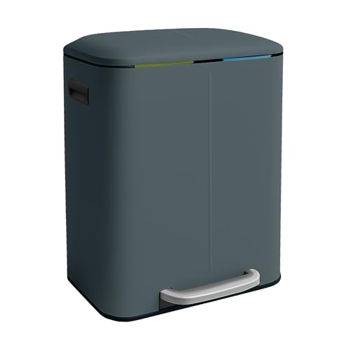 spirella Poubelle Système de tri sélectif avec couvercle 40 L (2x20 litres) avec seau intérieur grandes poubelles Poubelle à pédale Acier inoxydable Argent