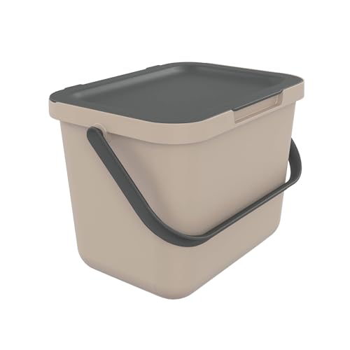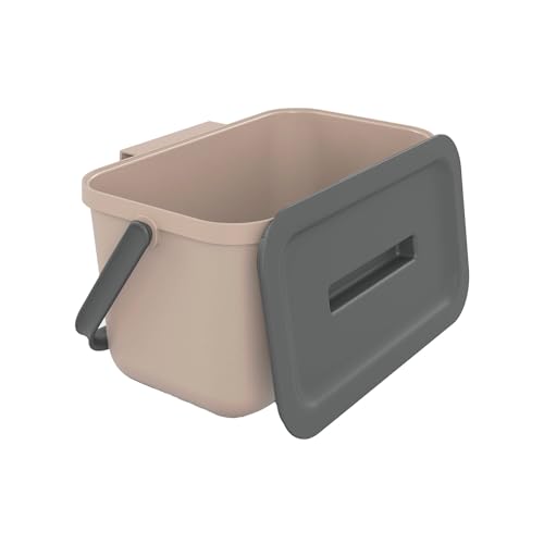 SUNDIS Loops, poubelle de tri sélectif d’intérieur 6L, rectangulaire, en plastique recyclé taupe, avec couvercle et anse, idéale déchets organiques, pour cuisine, cantine, restaurant, salle de pause