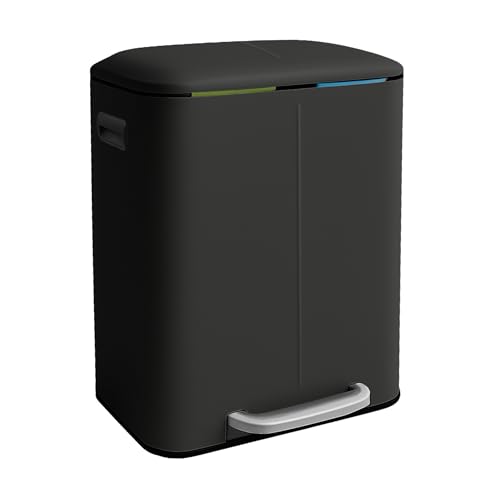 EKO Edison Poubelle à 2 compartiments, 2 x 30 litres, poubelle de cuisine avec double seau intérieur, 20 sacs poubelles, système de tri sélectif de grande capacité, couvercle à fermeture douce, sans