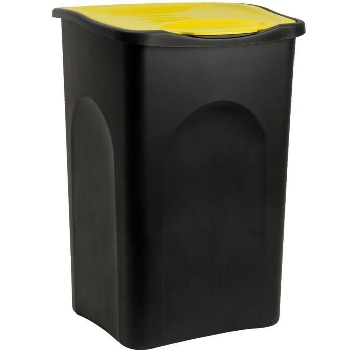 Poubelle 50 litres avec couvercle noir jaune collecteur de déchets cuisine plastique bureau couloir tri sélectif intérieur