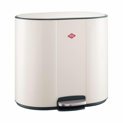 WESCO Multicollector - Lot de 2 poubelles à pédale - Sable mat - En tôle d'acier revêtue par pulvérisation - 2 récipients en plastique de 25 l - Pédalier en métal - Poignée pratique - Filtre