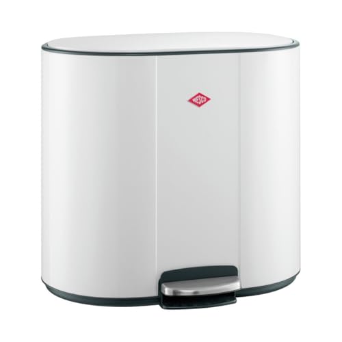 WESCO Multicollector Lot de 2 poubelles à pédale blanc mat en tôle d'acier revêtue par pulvérisation, 2 récipients en plastique de 25 l, pédale en métal, poignée pratique, filtre anti-odeurs