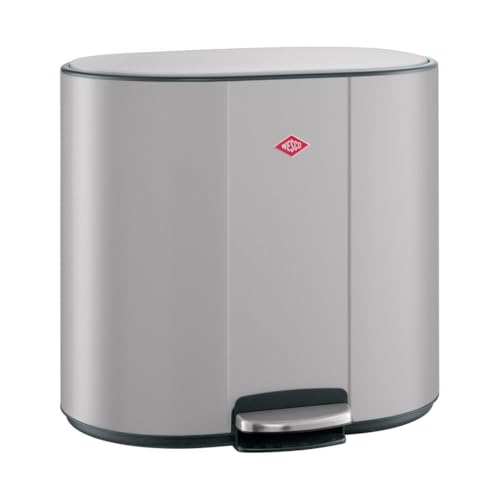 WESCO Multicollector Lot de 2 poubelles à pédale gris mat en tôle d'acier revêtue par pulvérisation, 2 récipients en plastique de 25 l, pédale en métal, poignée pratique, filtre anti-odeurs
