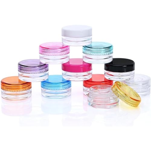 Lawei Lot de 108 mini pots vides de voyage en plastique transparent de 3 g avec couvercles à vis transparents pour crème, lotion, fard à paupières, ongles, poudre, transparent