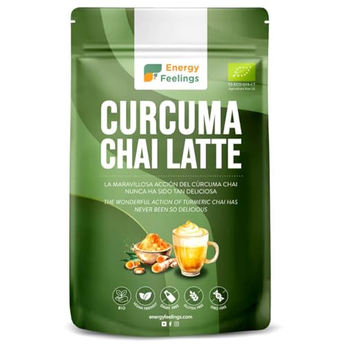 Energy Feelings Curcuma Chai Latte en Poudre Bio 500g, Golden Latte Avec Curcuma Gingembre et Cannelle, Infusion Bio Sans Gluten et Sans Lactose, Thé Chai, Vegan, Organic