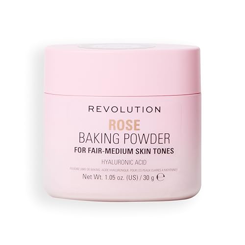 Revolution Loose Baking Powder – Poudre fixatrice de maquillage, fini lumineux, absorbe les brillances et l’excès de sébum, vegan et sans cruauté, 30 g, Rose