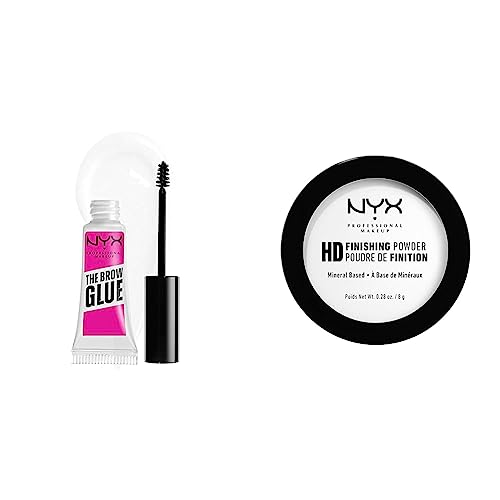 NYX Professional Makeup Colle Fixatrice à Sourcils Teintée, Tenue 16H, Formule Vegan, Teinte : Transparent & Poudre de Finition Compacte Perfectrice de Teint High Definition, Teinte : Translucide