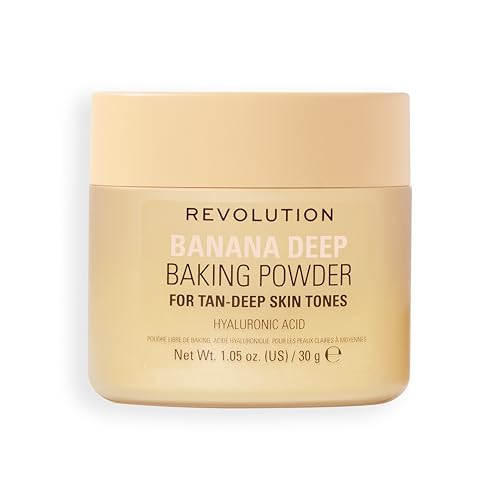 Revolution Loose Baking Powder – Poudre fixatrice de maquillage, fini lumineux, absorbe les brillances et l’excès de sébum, vegan et sans cruauté, 30 g, Banana Deep