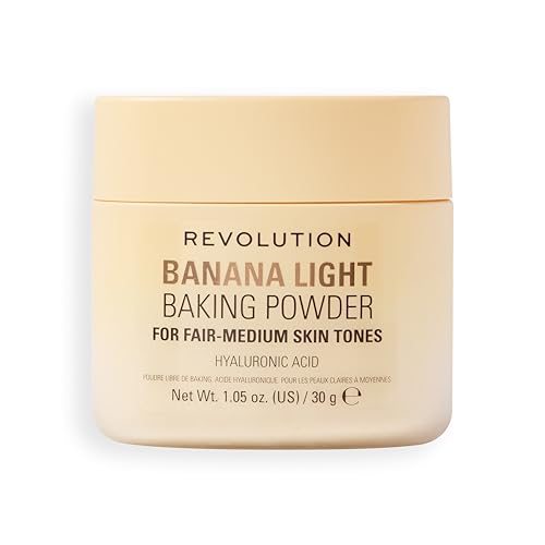 Revolution Loose Baking Powder – Poudre fixatrice de maquillage, fini lumineux, absorbe les brillances et l’excès de sébum, vegan et sans cruauté, 30 g, Banana Light
