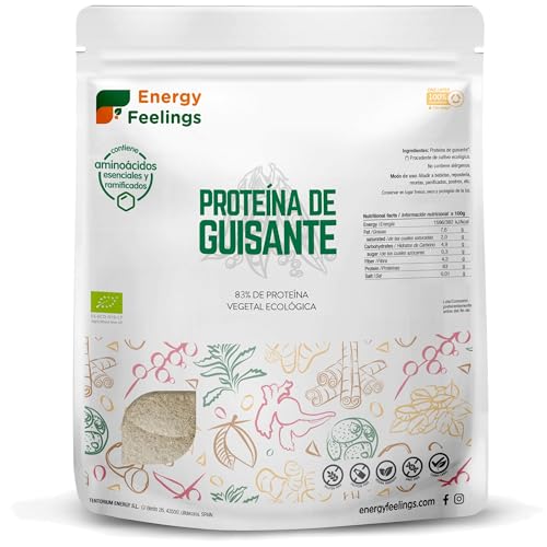 Energy Feelings Protéine Végétale Bio de Pois 83% Goût Neutre 1 kg, Poudre de Protéine Vegan pour Musculation, Sans Lactose, Sans Sucres Ajoutés, Vegan Protein Powder