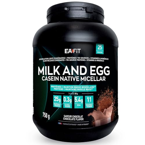 EAFIT - Milk&Egg - Protéines tri-sources : caséine, isolat, blanc d'oeuf - Assimilation lente - Protein de caseine - Proteine en poudre pour musculation - BCAA vitamine et minéraux- Chocolat - 750g