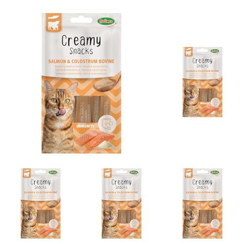 Bubimex - Creamy Snacks Saumon et Poudre de Colostrum Bovin - Friandises Crèmes à Lécher pour Chats - Texture Lisse, Onctueuse et Appétissante - Stimule l'Appétit et Favorise l'Hydratation - 4 x 15 g