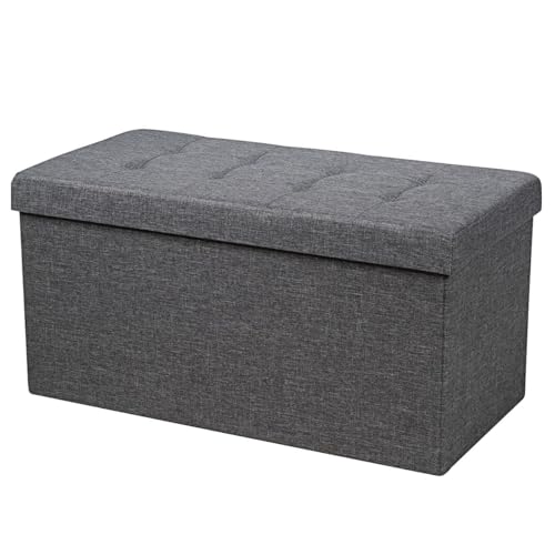 FANTASK Pouf de Rangement 80 cm x 40,5 cm x 40,5 cm - Boîte de Rangement Pliable - pour Chambre à Coucher et entrée - Gris foncé