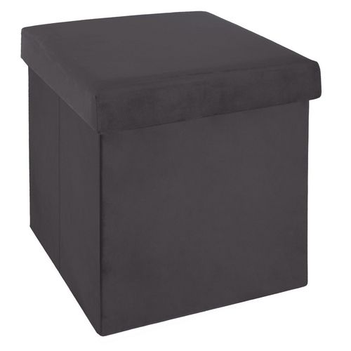 Pouf coffre velours effet capitonné pliable - pouf de rangement - dim. 38x38x38cm - gris