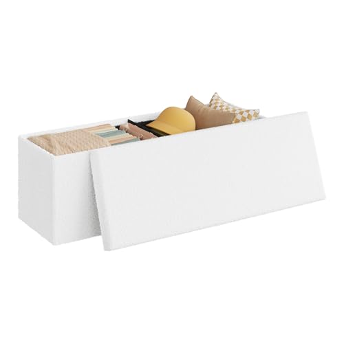 WOLTU Banc de Rangement, Pouf Coffre, avec Couvercle Amovible, Design Pliable, Siège Rembourré, en Polaire Teddy, 135L, 110x38x38,5 cm, pour Salon, Chambre, Entrée, Blanc