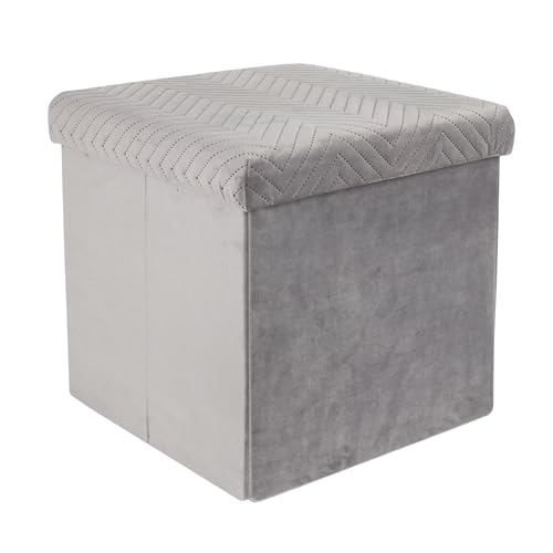 HOME DECO FACTORY Coffre Pouf Rangement Pliable Gain de Place Velours Gris