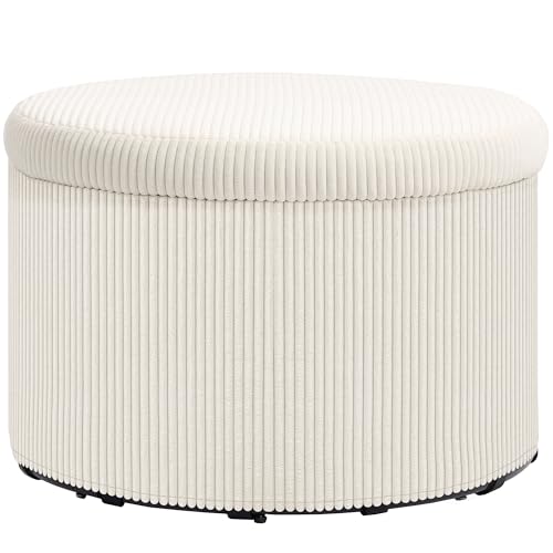 HOMCOM Pouf Coffre Rangement, Tabouret Rond, Pouf Repose-Pieds en Velours côtelé, pour la Chambre à Coucher, entrée, Salon, Charge 120 Kg, Ø 60 x 41 cm, Beige
