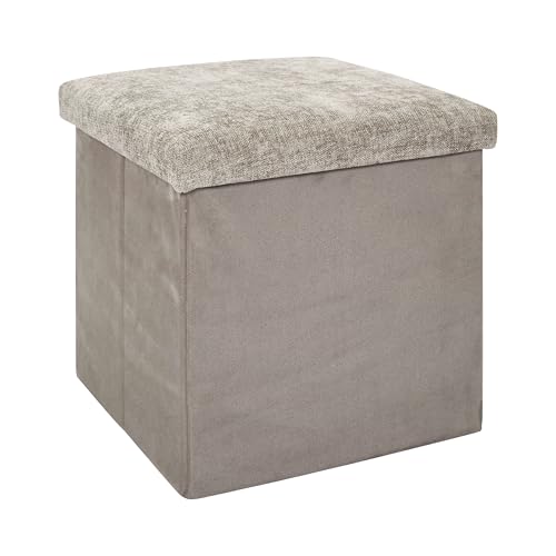 Five - 2 en 1 Pouf et Coffre de Rangement en Velours Beige Lin 31 x 31 cm (Lot de 2)