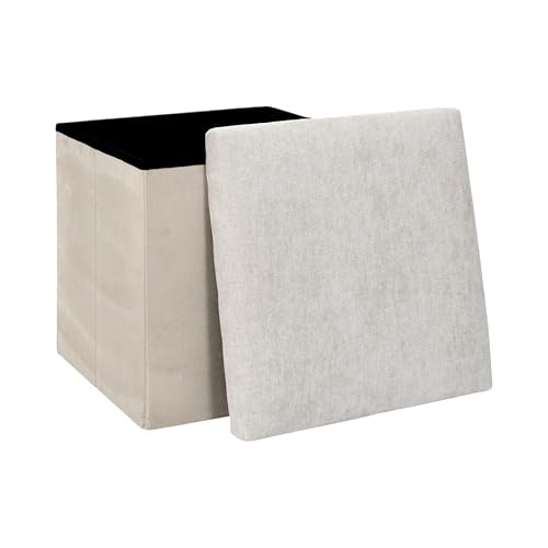 HOME DECO FACTORY - HD7802 - Coffre Pouf Pliable Emilia Beige - Unité de Rangement Pratique - Assise d'Appoint - Idéal pour Plaids et Coussins - Matériau en Polyester - Standard - Beige