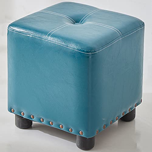 Tabouret Ottoman en Lin, Tabouret pour se Changer, Petit Tabouret carré, Repose-Pieds, Pouf pour Salon, Pouf pour Chambre, Pouf d'extérieur, Bleu-Jaune, 40 x 30 x 17 cm