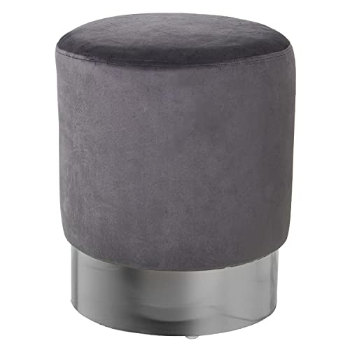 DRW Pouf Rond en Velours Gris et argenté 35 x 42 cm