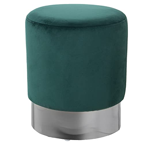 DRW Pouf Rond en Velours en Vert foncé et argenté 35 x 42 cm