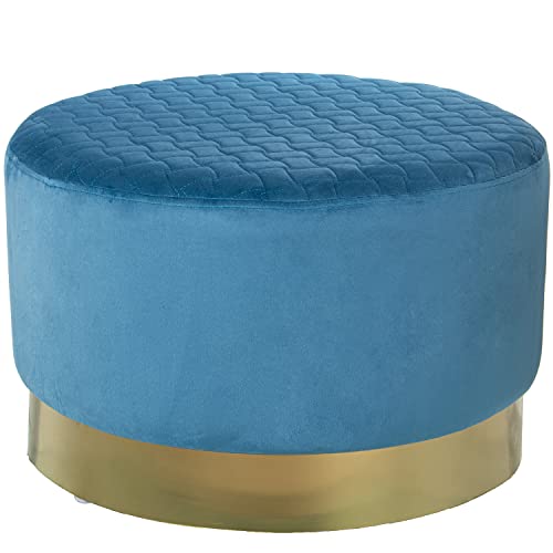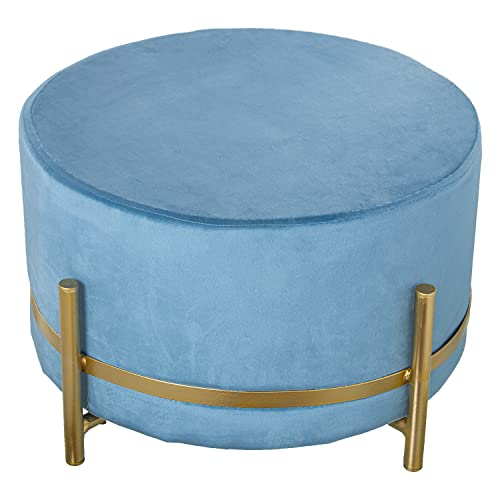 DRW Pouf Rond en Velours Bleu avec Pieds en métal doré 50 x 30 cm