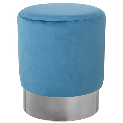 DRW Pouf Rond en Velours Bleu et argenté 35 x 42 cm