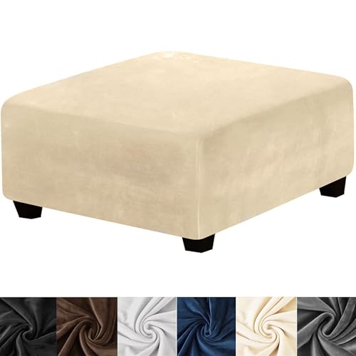 HFCNMY Housse de Pouf carré en Velours Extensible épais Lavable avec élastique en Bas pour Salon, Beige, Taille M