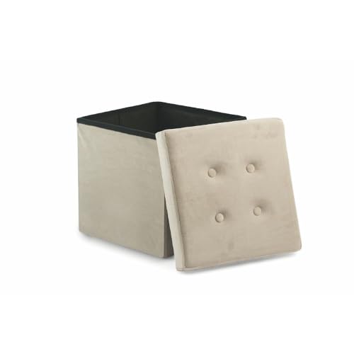 Galileo Casa 2194624 Pouf Coffre en Velours Beige 37,5 x 37,5 x 38 cm