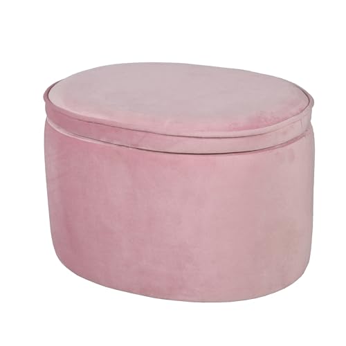 roba Pouf Coffre Ovale en Velours pour Chambre Enfant "Lil Sofa" - Tabouret Avec Coffre de Rangement - Rose