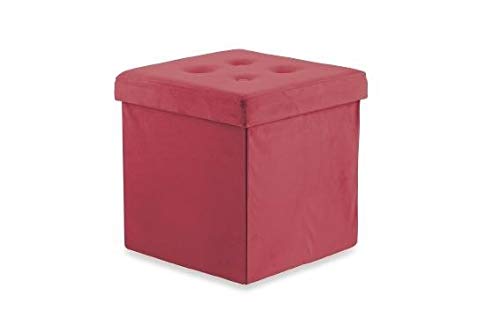 Galileo Casa 2194636 Pouf Coffre en Velours Bordeaux 37,5 x 37,5 x 38 cm, Rouge