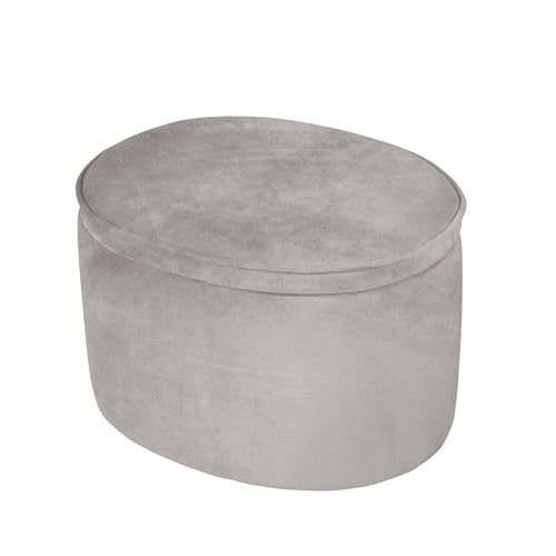 roba Pouf Coffre Ovale en Velours pour Chambre Enfant "Lil Sofa" - Tabouret Avec Coffre de Rangement - Gris Argenté